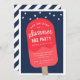 Convide amigos, família e vizinhos para a sua celebração de verão com estes convites festivos numa paleta de cores vermelha, branca e azul clássica. Design moderno apresenta a ilustração do pop sorvete vermelho num fundo azul marinho pontilhado com estrelas patrióticas. Personalize com o seu tipo de evento, fazer deste versátil convite de verão perfeito para o seu churrasco, CHURRASCO, cookout, festa de bloco ou fim de verão.