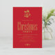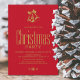 Compartilhe a alegria e convide seus amigos e entes queridos para comemorar o Natal com este simples, na moda, convite de festas vermelho e ouro de Natal.