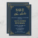 Elegante festa do coquetel de Natal Convide para salvar a data Marinho Dourado chic moderno