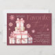 Convide amigos para uma festa de Natal ou de Natal com temas favoritos com este convite elegante e festivo, com ilustrações de aquarelas em tons suaves de rosa pincelado num fundo rico de ameixa de açúcar. Seus detalhes favoritos da festa são flanqueados por uma torre de presentes de Natal embrulhados em uma cor d'água rosa pincelada, com flocos de neve rosa cascata. Personalize com os detalhes do seu partido, incluindo instruções para os seus hóspedes sobre quantos presentes trazer e o seu valor estimado.