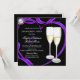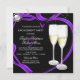 Convite de Festa de Compromisso Preto Elegante Prata e Roxo. Por favor, note: Todas as imagens planas! Elas não têm joias reais!