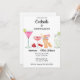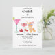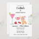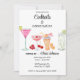 Convite divertido para festa de coquetéis e conversa para um evento de destino com ilustração de bebidas tropicais coloridas.