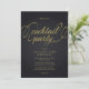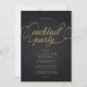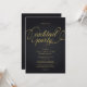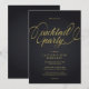 Convite de festa de coquetel moderno e sofisticado em preto e dourado com tipografia elegante.