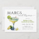 Brinque à sua mãe ou a um grupo de Mães com um cocktail em sua honra com este divertido convite de na moda "Margs and Mães". Seja em uma sala de terraços, seu bar favorito, um restaurante elegante, ou uma reunião mais íntima de casa, este tema certamente fará para uma noite cheia de diversão. Este design de convite tem um copo de margarita congelado, regado pela boca, com jante salgada e fatias de limão pintadas em aquarelas vibrantes para um fascínio sofisticado e simples. Personalize o modelo de texto fácil de usar com as informações da sua festa e você está pronto. Este convite está disponível tanto em convites impressos para envio de correio como em download digital sem papel para envio eletrônico aos seus convidados.