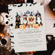 Uma festa de fantasia de Halloween, convites de modelo modernos. Pronto para adicionar suas próprias informações personalizadas. Data, Endereço, RSVP, número de telefone ou email. Com grandes raças de cães; Rottweiler, Touro-Pit, Labradoodle ou Goldendoodle, e um Cão-de-Montanha Bernês, rodeado de abóboras bonitinhas, um morcego, e balões de cinza. Excelente para uma festa de Halloween adulta, adolescentes, crianças, até para uma festa de fantasia de Halloween.