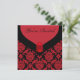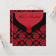 Convite de festa e evento elegante em damasco vermelho rubi e preto com acabamento em joia vermelha rubi.