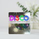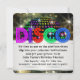 Convites de festa de dança disco com sapatos de salto alto e bola espelhada.