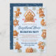 Convite de festas de decoração da Casa de Pão Dourado Azul