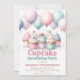 Cupcake Decorando Crianças Do Partido Fazendo Convite De Aniversário. Este convite é perfeito para uma celebração de aniversário divertida e criativa. Deixe os amigos dela se divertirem enquanto decoram cupcakes deliciosos juntos. Facilmente personalizável,