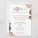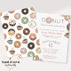 Convites de festa de despedida com um tema de donut desenhado à mão e o título espirituoso você não quer perder esta festa, onde o O em donut é ilustrado como um donut rosa fofo. Com arte digital original desenhada à mão com donuts de chocolate marrom, glacê branco, caramelo marrom, rosa e verde menta em um estilo fofo e divertido, este convite funciona lindamente para festas de despedida, celebrações de despedida, envio de escritório, reuniões de despedida do bairro e festas infantis ou familiares. O modelo editável inclui campos para data, hora, local e detalhes de RSVP para que você possa personalizá-lo em minutos. Disponível para encomendar como cartões impressos ou baixar instantaneamente para envio digital fácil. Uma festa com tema de donut nunca foi tão fácil de organizar. Pegue este convite, compre uma dúzia de donuts e diga seu adeus mais