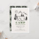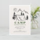 Este convite de festa de despedida de solteira com tema de camping apresenta ilustrações desenhadas à mão da tenda, montanhas, árvores e sol. O verso apresenta um fundo verde caqui com padrões de árvores. Personalize-o para suas necessidades. Você pode encontrar produtos correspondentes na minha loja.