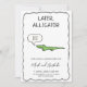 Um convite divertido de festa de despedida com um lagarto sorridente. O cartão é fácil de personalizar com sua redação, fonte, cor da fonte, opções de forma de papel e escolha de tipos de papel. Não é exatamente o que você está procurando? Todos os nossos produtos podem ser personalizados para atender às suas necessidades sem nenhum custo adicional. Basta entrar em contato conosco