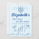 Junte-se a nós para uma solha encharcada de sol na praia! Prepare-se para um dia cheio de brisa oceânica, bebidas tropicais, risos e memórias inesquecíveis. Arranje seus maiôs, tons e melhores vibrações na praia enquanto brindamos ao amor, amizade e a bela noiva! Vamos fazer ondas antes que ela gravatas o nó! O convite é feito com rabiscos feitos à mão de decores, conchas, estrelas e ondas com belos blues, decorados com listras azuis e brancas.