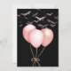 Cartão de convite para festas do Dia das Bruxas, preto e rosa, com um design pastelão: gêmeos assustadores e balões cor-de-rosa!