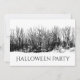 Convite à Festa de Halloween Preta e Branca, com uma floresta gótica e design de tipografia. Com letras personalizáveis em preto e branco, você pode adicionar suas próprias informações. Excelente para adicionar um toque assustador ao seu Feriado ou festa de fantasia.