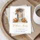 Convide convidados para o seu Festa de Halloween com os nossos convites festivos e rústicos para a festa de Halloween. Os convites apresentam uma ilustração aquarela de uma varanda frontal decorada com jack-o-lanternas, abóboras e folhagem de outono. Personalize os convites da festa de Dia das Bruxas de Jack-o-Lanterna com seus detalhes de eventos. O convite pode ser usado para festas de Halloween, casas abertas e muito mais! Apenas mude o texto para acomodar seu evento especial!