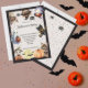 Este convite bonito apresenta gatos bonitos, fantasmas, aranhas e morcegos. As palavras "Festa de Halloween" são escritas de forma divertida e festiva. Você pode personalizar o convite para a festa de Halloween dos seus filhos. As costas têm duas aranhas e estrelas em roxo, laranja e preto.
