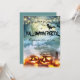 Um convite de festa assustador para o Halloween que inclui uma lua de cheio, luzes cintilantes, morcegos em voo, e abóboras assustadoras que você pode facilmente personalizar para sua própria festa assustadora de Halloween.