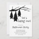 Este divertido convite apresenta uma ilustração em preto e branco de morcegos pendurados em um galho de árvore. As palavras "Vamos Hang Out" são escritas em uma fonte fofa. É a maneira perfeita de adicionar um toque de diversão de Halloween à sua festa e deixar seus convidados saberem que estão dentro por um tempo assustadoramente bom. É um sucesso para todos que o recebem.