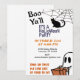 O convite para festas de Dia das Bruxas de crianças simples e bonitas com a frase popular "Boo Y'all" também apresenta um fantasma amigável, um gato preto e o versículo "truque ou tratamento que temos muita comida para comer".