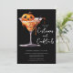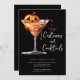 Este convite festivo apresenta um coquetel de Dia das Bruxas de Jack-o-lanterno. As palavras "fantasias e cocktails" são escritas em letra de escrita divertida. É a maneira perfeita de convidar seus amigos para uma festa de Halloween assustadora onde eles podem vir vestidos com seus trajes e aproveitar um delicioso coquetel de Halloween.