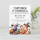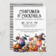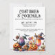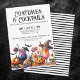 Bem-vindos a uma festa de fantasia de Halloween com este convite simples e assustador com uma vibração festiva inspirada na vintage. O design tem um fundo preto angustiante com fontes laranja e brancas numa mistura de estilos de ornamentado e serifa para uma aparência clássica e antiga. A tipografia tem um efeito sutil para lhe dar um encanto estranho. No topo, a frase "Figurinos e Cocktails" define o tom para uma noite divertida de apenas adultos — perfeita para uma comemoração de 21+ Halloween. Os detalhes da festa estão centrados por baixo para uma leitura fácil. Ao longo do fundo, uma cena colorida e festiva do Dia das Bruxas apresenta cocktails assustadores, doces, abóboras-de-jack, chapéu de bruxa, crânio, morcegos e outros sotaques de festas para trazer a diversão sazonal. A parte traseira tem um padrão de distribuição preto e branco sujo, que você pode personalizar alterando a faixa ou a cor do plano de fundo - ou ambos - para corresponder à sua vibração da festa. Uma escolha divertida e na moda para uma reunião de Halloween com bebidas, fantasias e charme assustador. Festa de Halloween Invitation Costumes & Cocktails 21+ Adultos Halloween Black Orange Cocktails Candy Pumpkins Skulls Bats. Disponível como um convite impresso ou um arquivo digital descarregável que você pode enviar por e-mail ou impressão localmente.