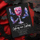 Assusta-te com este convite de Dia das Bruxas assustador. Este item apresenta uma design de um coquetel com um crânio dentro, cercado por morcegos, com as palavras "fantasias e coquetéis" escritas em letra divertida. É a maneira perfeita de convidar seus amigos para uma festa assustadora e doce de Halloween.