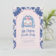 Este convite de festas de suéter de Natal feio tem um design pré-disquete do milênio apresentando um suéter rosa e azul com um marinho azul e borda cor-de-rosa pincelada ao redor da borda. A frente e o verso têm uma cor damasco coordenadora.