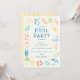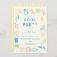 Convite de festas de Verão. Recursos, rabiscos coloridos de verão bordam e coordenam o padrão amarelo de apoio.