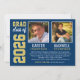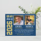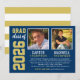 Celebre dois graduados com este convite de festa de formatura dupla e ousado, apresentando uma tipografia "Turma de" superdimensionada com um ano marcante exibido ao lado de retratos de formatura lado a lado. A mistura esportiva de letras maiúsculas, letras cursivas e números em estilo de universidade dá a este design um sentimento espirituoso e enérgico, perfeito para irmãos ou gêmeos. O texto totalmente personalizável torna fácil personalizar nomes, detalhes da escola e todas as informações da sua festa.