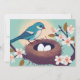 Um convite para uma Festa do Ninho, um novo tipo de chá de bebê, recomendado para um menino (ou gêmeos, já que há 2 ovos no ninho).