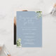 Este convite de festa de noivado floral verde-azulado empoeirado elegante pode ser personalizado com suas informações em tipografia chic com sua foto no verso. Criado por Thisisnotme©