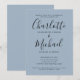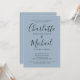Com nomes de estilo de assinatura, este convite de festa de engajamento simples, elegante e moderno pode ser personalizado com suas informações em letras sofisticadas em um fundo azul empoeirado. Concebido por Thisisnotme©