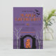 Convide seus amigos para uma noite festiva de criatividade e diversão com nosso Convite para Festa de Decoração de Abóboras. Este design impressionante apresenta um fundo roxo rico que define o clima perfeito para o Halloween. Na parte inferior, silhuetas de uma entrada de cemitério e uma cerca assustadora enquadram o convite, enquanto árvores sinistras pairam ao fundo, adicionando um elemento de mistério.