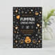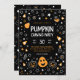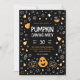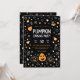 uma festa de esculpir abóbora divertida convidada em um fundo escuro com texto personalizável fácil com sua própria redação. Anuncie sua festa de esculpir abóbora de halloween com este convite divertido e fofo moderno, com abóboras, poções, doces e elementos de rabisco celestial combinando cores laranja, preto e branco. Veja o conjunto inteiro para comemorar a queda no estilo. Design por @rodicadraws.