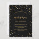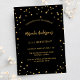 Um convite de aniversário glamouroso para ele e para ela. Um fundo preto decorado com estrelas douradas falsas. Personalize e adicione um nome e detalhes da parte. Texto colorido do ouro. Fundo: fundo preto e estrelas ouros.