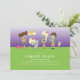 Este design apresenta quatro crianças zumbis, juntamente com um cérebro e uma mão saindo do subsolo, em frente a um fundo gradiente de roxo claro a escuro. Os detalhes da sua festa são exibidos em branco contra um fundo verde. O texto é completamente personalizável. Perfeito para um aniversário ou festa de Halloween. Gráficos ©Prettygrafikdesign