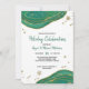 Nosso design de convite para festas de férias verdes e douradas apresenta godes/agates verdes de aquarelas, gotículas de ouro e flocos de neve de ouro cintilante. Embora não seja utilizada qualquer folha de ouro neste design, o papel semirbrilhante dá ao trabalho de arte uma bela folha. A tipografia da escrita divertida é combinada com letras modernas de blocos, em verde e preto. #Elegante #Férias #Convites #PartyInvites