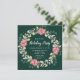 Este convite para festas divertidas e festivas apresenta uma coroa aquática de natal com poinsetos cor-de-rosa e holly sobre um fundo verde escuro. O texto combina o script manuscrito e as fontes serif para um aspecto elegante e sofisticado. Isto é perfeito para festas de férias, embrulhos, festas de janto, casa aberta e muito mais.