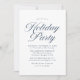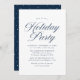 Simples convites para festas de férias com "Festa de Férias" em um roteiro elegante de caligrafia de marinho. Personalize os convites elegantes de festas de feriado com os detalhes de sua festa exibidos em marinho. O convida os servidores a um fundo marinho com sutis pontos brancos (neve).