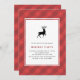Feliz Feriados! Xadrez Vermelha Clássica com Convite de Feriado de Deer | Convide familiares e amigos para a sua festa de férias com este convite de férias personalizável. Apresenta um padrão de xadrez vermelha, ilustração de veados e tipografia clássica. Personalize adicionando seus próprios detalhes. Você pode personalizar ainda mais o verso adicionando uma foto ou qualquer outra imagem.
