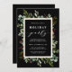 Este convite para festas mostra a cor d'água dos bagos vermelhos, ramos de pinheiros, eucalipto, folhas verdes com uma falso estrutura retangular de ouro e um código QR no verso. Para personalização mais avançada deste design, clique no BOTÃO FERRAMENTA DESIGN AZUL para alterar a fonte, o tamanho, a cor, etc.