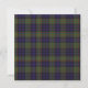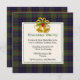 convite de festas de Natal na moda xadrez feito no padrão tradicional de xadrez colorida MacLellan tartan. Uma área de texto quadrado esbranquiçada, no meio, é decorada com gráficos de costura verde e ouro. Personalize o texto verde e preto para atender às necessidades do seu partido.