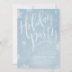 Celebre a temporada com este convite para festas de Natal na moda, apresenta grandes caligrafia manuscrita e flocos de neve em branco em fundo azul de inverno, modernos e elegantes. convites para excelentes para festas de férias anuais, festas de Natal de família ou companhia.