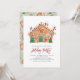 Convide a família e os amigos para a sua festa de férias com este convite de festa divertida e festiva. Ele apresenta uma ilustração aquosa de uma casa de pão de gengibre com canas doces vermelhas e verdes com padrão de feriado equivalente. Os textos são perfeitamente editáveis para todos os efeitos. Personalize adicionando evento, data, hora, local e outros detalhes. Você também pode mudar o padrão traseiro para uma foto ou qualquer outra imagem. Esta festiva casa de pão de gengibre está disponível no convite de festas de Natal em outros estoques.