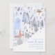 Uma vila de esqui alpino, bonita e minuciosamente detalhada, pintada a aquarelas, com montanhas de neve, chalés e comerciantes de esqui, esquiadores, visitantes construindo nevões, aldeões se reunindo, crianças brincando, cachorros latindo e sinos de natal a'ringing in this ilustrated Winter Fay, destaca este convite para festas de Natal com texto editável na frente e no verso do convite.