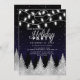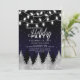 Comemore a época de férias de inverno com estes convites de festas de Férias, maravilhosos e únicos. Eles apresentam luzes de Natal brilhantes e desenhadas à mão, em branco, com uma fita prateada. O fundo é composto por um céu gradiente preto-a-marinho azul com neve cinzenta prateada imprimida falso que cai sobre pinheiros em cinza prateada e preto. Este design moderno, elegante e chic encherá seus hóspedes com espírito e alegria! ***NOTA DE DESIGN IMPORTANTE: Para qualquer solicitação de design personalizada, como solicitações de correspondência de produtos, alterações de posicionamento ou qualquer outra solicitação de alteração, clique no botão "CONTACT" ou envie um e-mail ao designer diretamente em lafemme.art@gmail.com. Você pode até enviar um e-mail para ela solicitando um design completamente personalizado e novo.