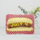 Cachorro quente com mostarda em um pão para o convite de festa de 4 de julho.