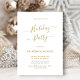 Os Convites do Mínimo de Férias Douradas modernas são perfeitos para um evento de Natal simples. Apresenta um elegante texto de "Festa Feriada" de inverno num belo tipo de letra com letras suaves em forma de haste em ouro, em fundo branco. Fácil de personalizar com seu nome e detalhes da festa.