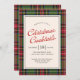 O Convite de Férias de Natal em Script de xadrez apresenta um quadro de xadrez vermelho e verde tradicional, com script retrorativo e tipo clássico.